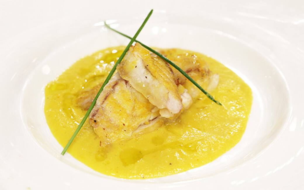 Fare soffriggere lo scalogno nell’olio ed aggiungerlo ai peperoni e alla pesca frullata, frullare ancora.4]Impiattare ponendo un po’ di crema nel centro del piatto, adagiare il filetto al centro e decorare con l’erba cipollina.