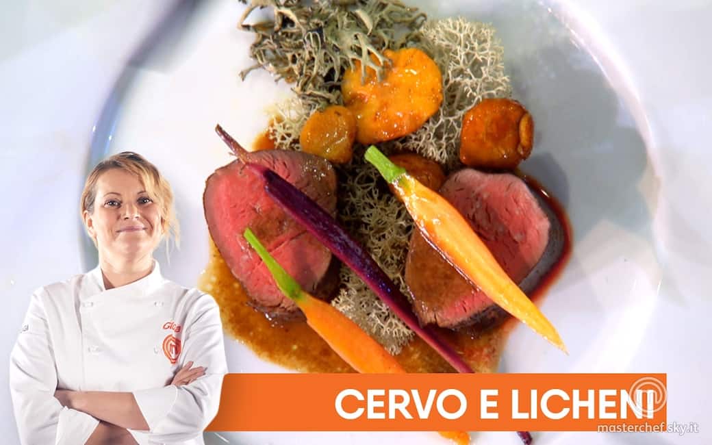 Impiattare i pezzi di controfiletto con i funghi, le carote baby e i licheni. Coprire il piatto con la campana per l’affumicatura e servire sollevando la cloche poco prima di assaggiare il piatto.