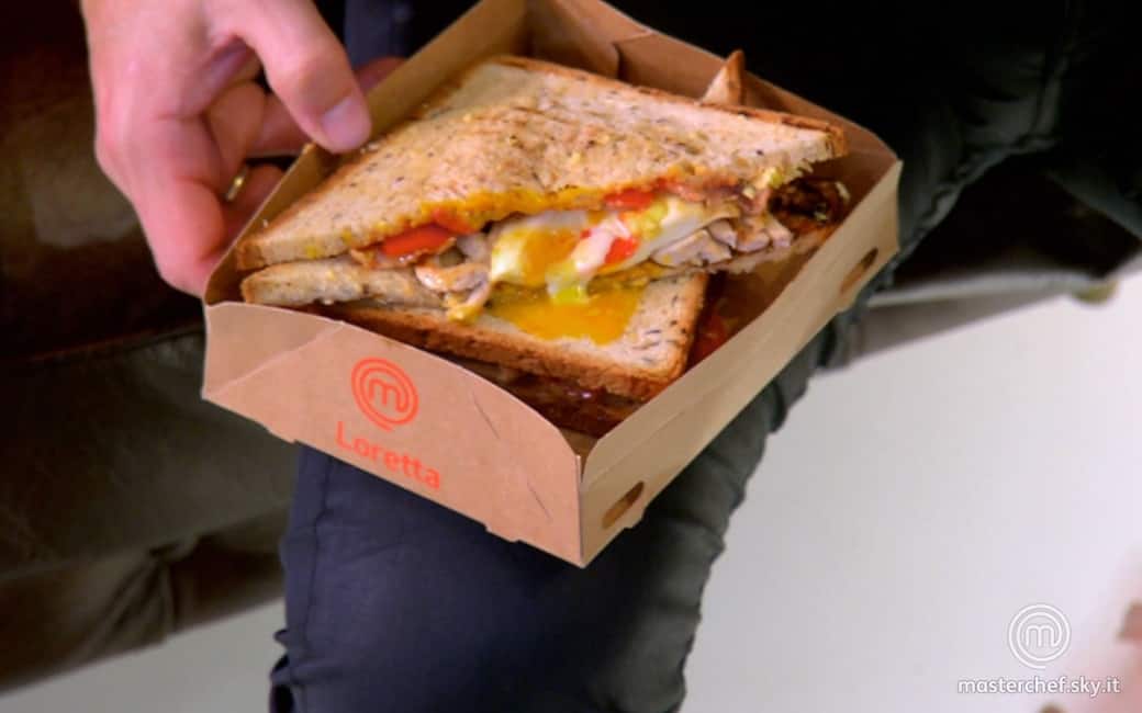 Comporre il sandwich disponendo alla base uno strato di salsa guacamole, sopra gli straccetti di pollo grigliati, una foglia di lattuga, l’uovo, il bacon e ultimare con uno strato di ketchup.