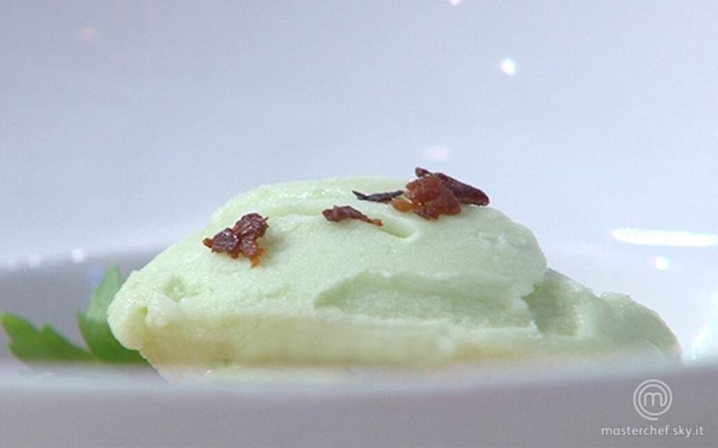 Con l'aiuto di una centrifuga centrifugare il sedano aggiungere l'impasto per i sorbetti e mettere in una sorbettiera.