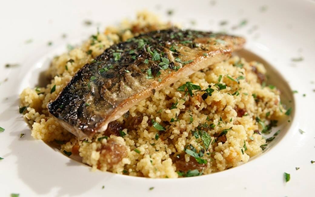 Per il cous cous: Sciogliere il burro in un pentolino. In una ciotola salare il cous cous e condirlo con il burro fuso, poi coprire con il brodo caldo, girare con una forchetta e lasciare riposare coprendolo con un torcione.