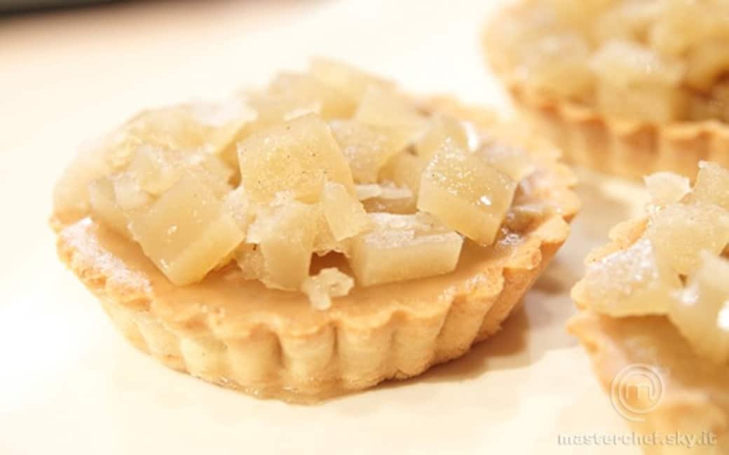 Aggiungere il composto di mela sul fondo della crostatina e sopra la gelatina precedentemente tagliata a pezzettini.