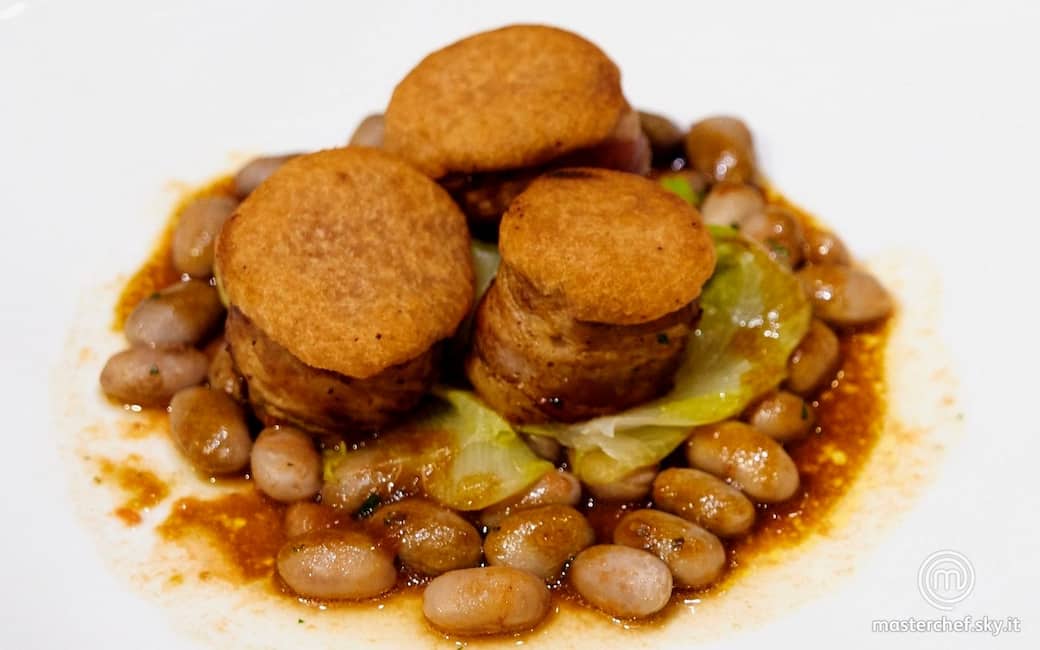 Cuocere i fagioli in abbondante acqua con gli spicchi d’aglio interi, il sedano, la salvia e un filo di olio evo. Lasciarli nella loro acqua di cottura. Preriscaldare il forno a 240 °C.
