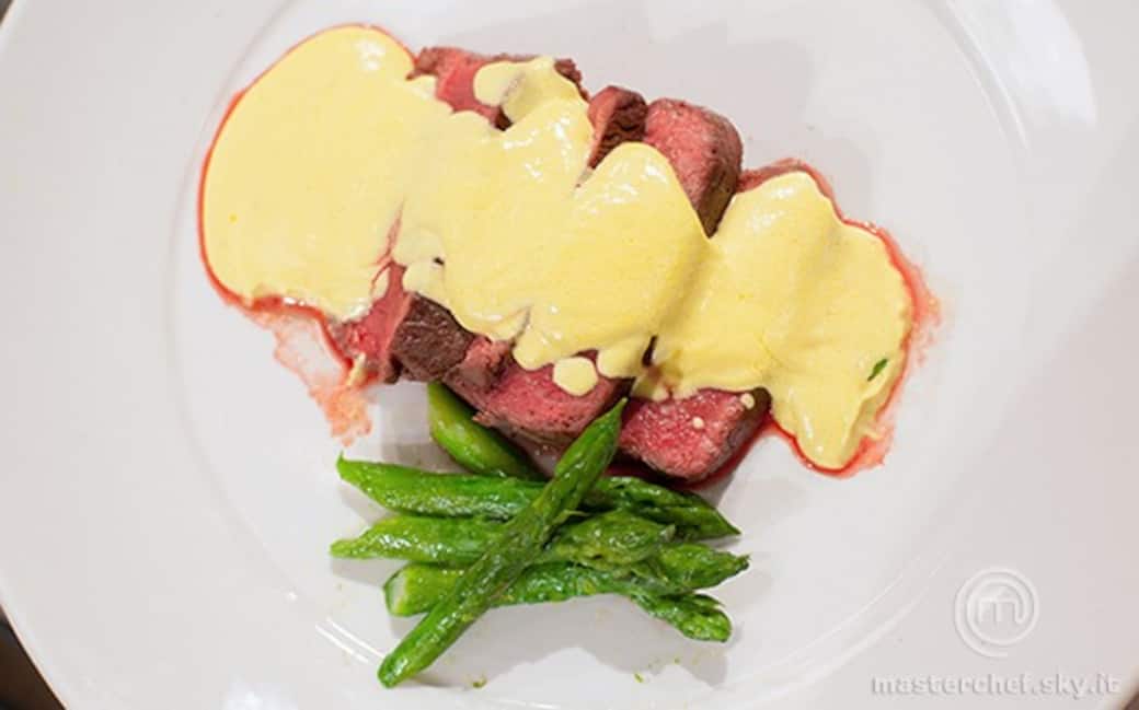 Passare la panna nel colino. Togliere i filetti dal forno. Impiattare: disporre i filetti e sopra mettervi la salsa di panna allo zafferano. A lato disporre gli asparagi precedentemente bolliti e conditi.