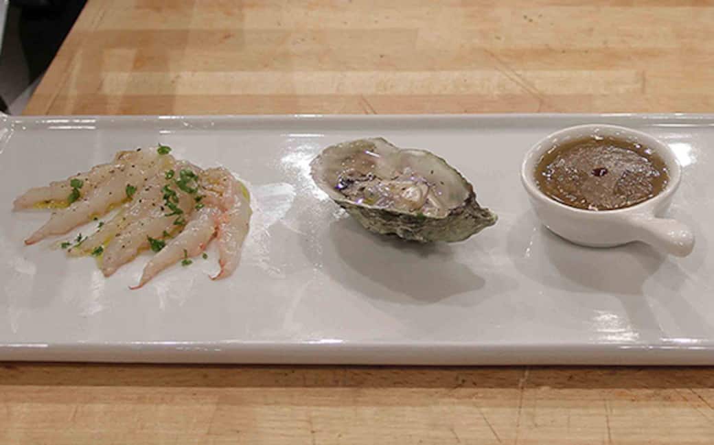 Aprire le ostriche, togliere l’acqua e aggiungere del Satén. Salare e pepare.