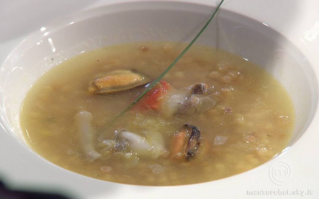 Cuocere la fregola con la stessa tecnica usata per il risotto: preparare un fondo con olio evo e cipollotto tritato, soffriggerlo e poi tostare la fregola sfumando con il vino bianco dealcolizzato. Continuare la cottura usando il brodo dei frutti di mare.
