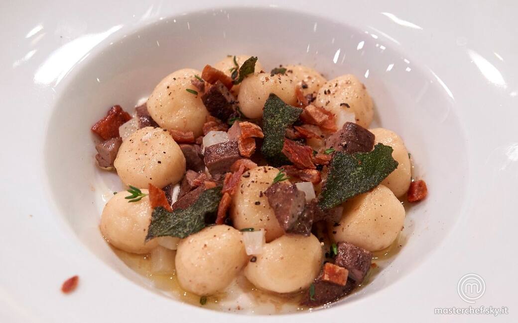 Cuocere gli gnocchi in abbondante acqua salata in ebollizione. Tritare i fegatini e saltarli in padella con un filo di olio evo, poca acqua, qualche foglia di salvia e il liquido dalla cottura precedente. Scolare gli gnocchi, saltarli nei fegatini e aggiungere acqua di cottura all’occorrenza.
