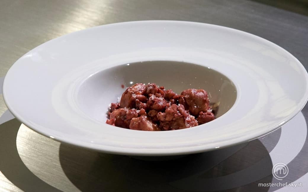 Realizzare degli gnocchi con l’impasto e bollirli nel brodo vegetale per qualche minuto. Scolarli e ripassarli nel ragù qualche minuto.
