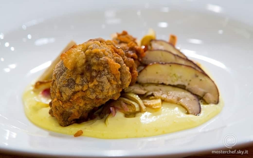 Farcire le costine con un battuto di funghi, rosmarino, pecorino, aglio, sale, pepe e olio, impanarle con uovo sbattuto e farina, friggerle in olio di semi e cuocerle quindi in forno.