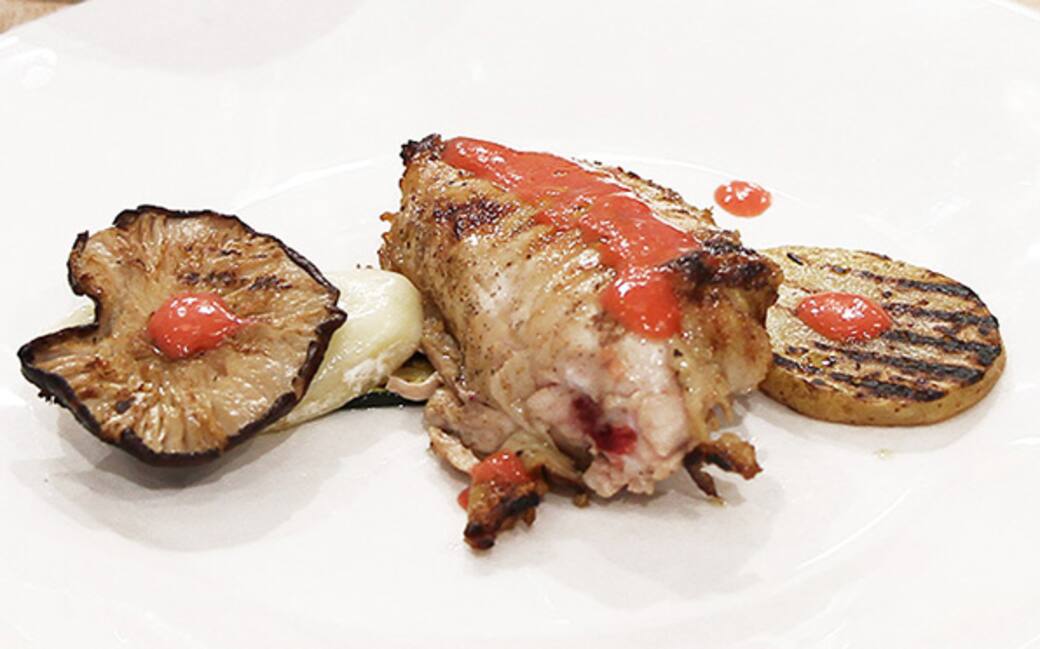 Creare una marinata con le erbe aromatiche e l’olio evo e comporre il piatto disponendo il formaggio alla base e formando un tortino con le verdure grigliate.