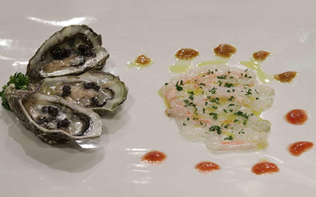 Adagiare le ostriche su un piatto, versargli sopra una noce di burro fusa e mezzo cucchiaio di caviale.