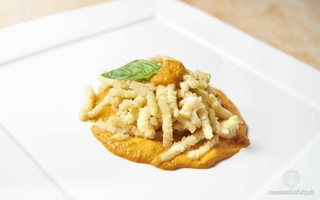 Posizionare elegantemente la salsa sul piatto, posizionare i passatelli con il baccalà e guarnire con una fogliolina di menta.