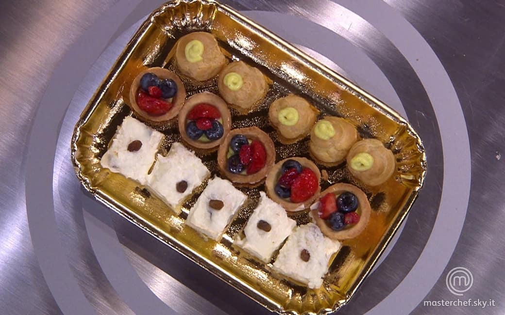 Per i bignè o pasta choux: portare a bollore in una casseruola 200 millilitri di acqua e aggiungere 100 grammi di burro, un pizzico di sale e uno di zucchero. A parte setacciare 110 grammi di farina che verranno poi aggiunti alla casseruola. Girare l'impasto con un mestolo; appena inizia a friggere togliere dalla casseruola e metterlo in una ciotola. Aprire in modo che il vapore fuori esca e poi iniziamo ad aggiungere un po' alla volta i 3 albumi e i 6 tuorli. Mettere in una sac à poche e creare delle piccole forme. Infornare a 180° finché non raggiungono la doratura.
