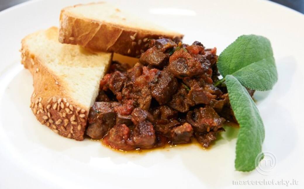 Aggiungere i fegatini nella padella con qualche foglia di salvia e sfumare con il vino Franciacorta.