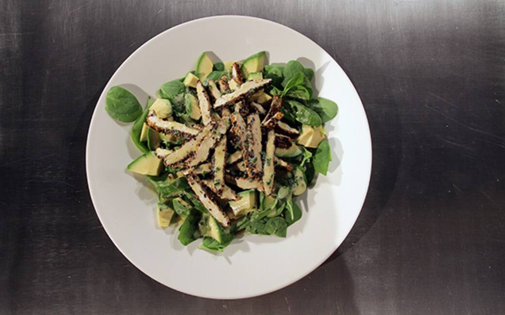 Tagliare l’avocado e condire gli spinaci e l’avocado con l’emulsione.