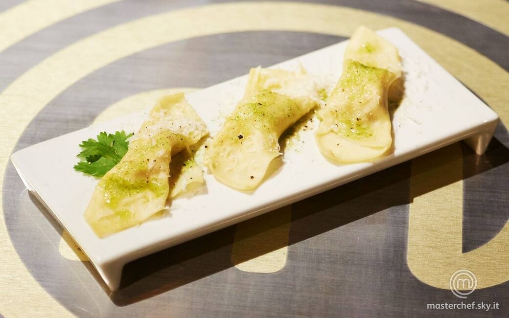 Impiattare disponendo i casoncelli irrorati con l’olio aromatizzato. Spolverare con parmigiano grattugiato e una macinata di pepe.