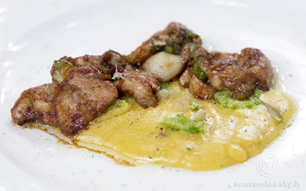 Impiattare adagiando le animelle sullo zabaione e decorare con asparagi e liquirizia tritati.