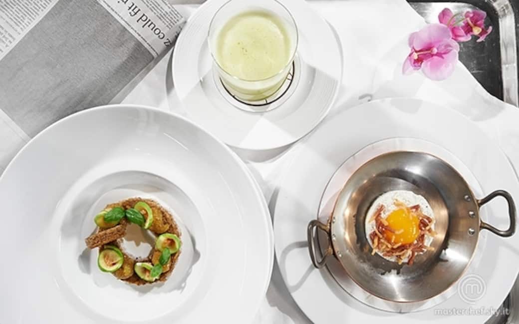 In un pentolino unire l’acqua allo zucchero e portare il composto alla temperatura di 80°C. Togliere dal fuoco e immergere il tuorlo d’uovo nel liquido. Lasciarlo in cottura fino al raggiungimento della consistenza desiderata. Mettere a scaldare una padella, tagliare a julienne il guanciale e spadellarlo fino a renderlo croccante, poi asciugarlo con carta cucina. Mantecare la ricotta con la crema di latte, l’olio extravergine d’oliva, il pepe e aggiustare di sapidità. Impiattare servendosi di un coppa pasta, disporre la ricotta mantecata nel centro, in modo da riprodurre un “finto albume”; recuperare il tuorlo, ormai pronto, asciugare il liquido in eccesso e posizionarlo nel centro della ricotta; ultimare il piatto disponendo il guanciale sul tuorlo.