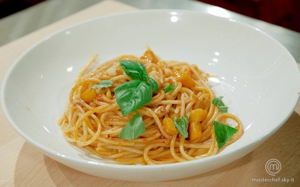 Cuocere gli spaghetti in abbondante acqua salata per 10 minuti.