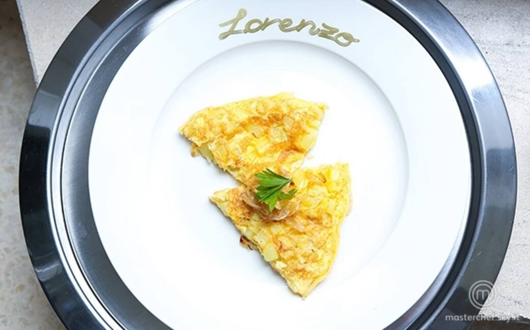 Sbattare le uova con sale e pepe. Versare le uova sopra le patate e le cipolle e cuocere finche non risulti ben dorato, a questo punto girare aiutandosi con un coperchio e terminare la cottura.