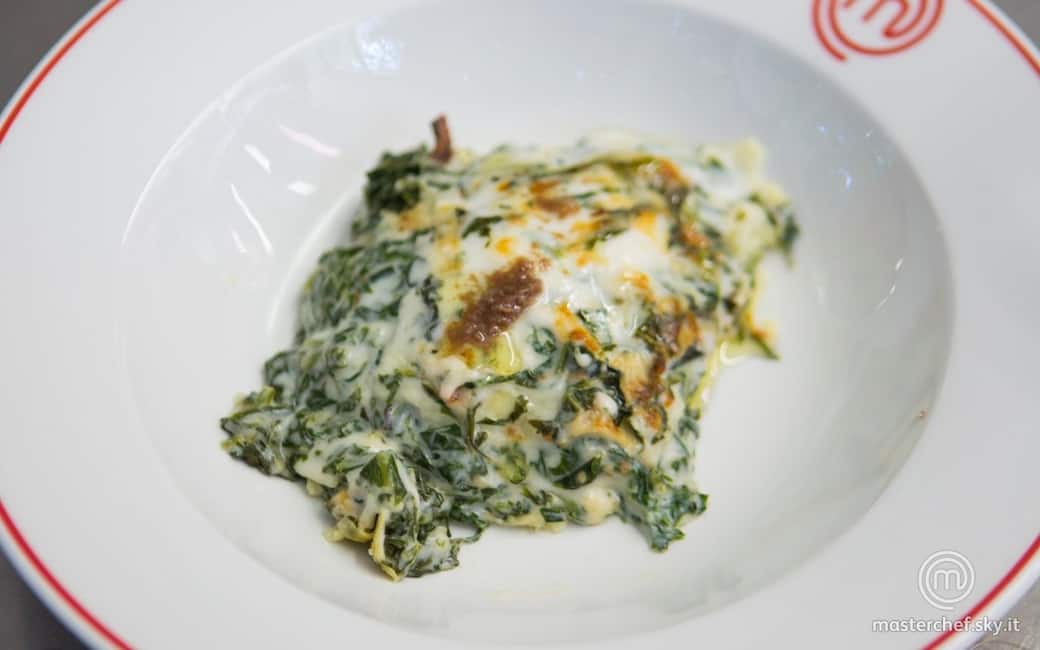 Servire una porzione di lasagna e aggiungere sopra l’acciuga.