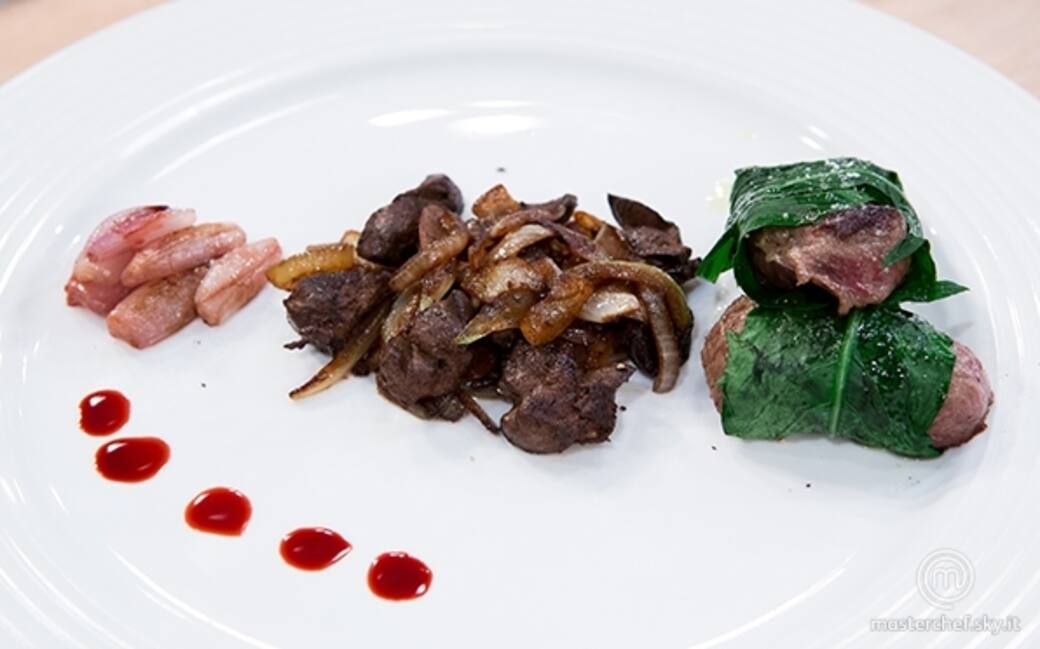 Tagliare e porzionare i filetti. Adagiarli sulla catalogna precedentemente sbollentata, aggiustare di sale e pepe e aggiungere gli scalogni caramellati e la riduzione di aceto di lamponi.