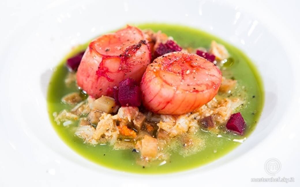 Cuocere le capesante in poco olio, un minuto per lato. Impiattare in un piatto fondo con la salsa di ostriche alla base, una quenelle di granseola al topinambur, le rape rosse e le capesante rosa a finire.
