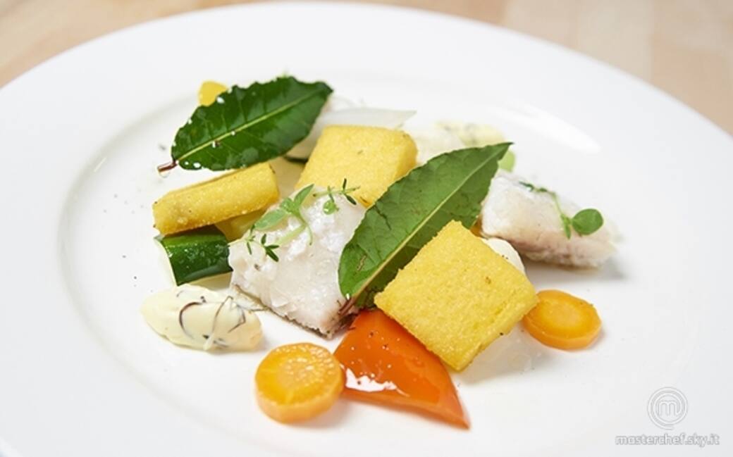 In una fondina porvi al centro la giardiniera, mettere sopra il luccio a pezzi, poi aggiungere la polenta e guarnire con la maionese aromatizzata e pepe.