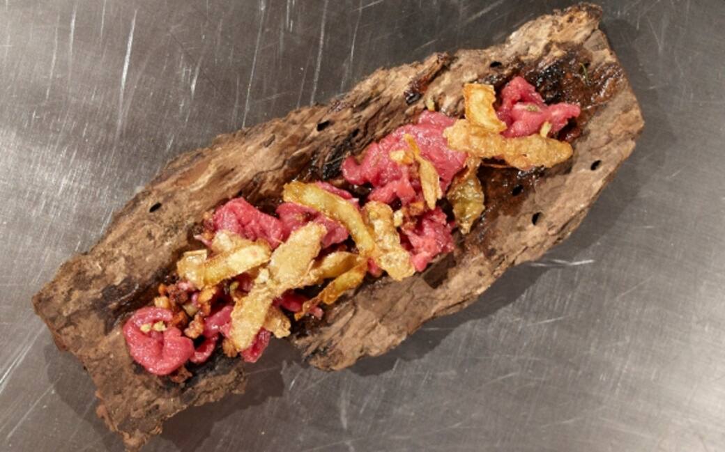 Nel frattempo tagliare il manzo a straccetti e metterli in una ciotola. Ungersi le mani con olio evo e condire gli straccetti massaggiandoli. Aggiungervi degli aghi di elicriso e lasciare insaporire.