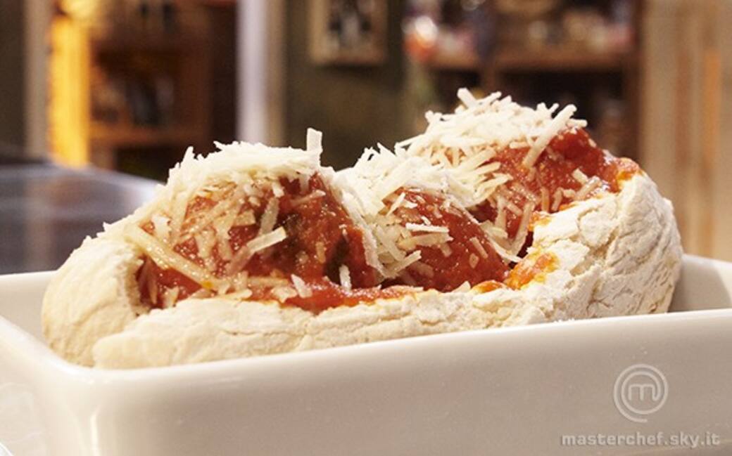 Grigliare i panini in forno, quindi tagliarli per formare una tasca e farcirli con polpette, il sugo e del parmigiano grattugiato a piacere.