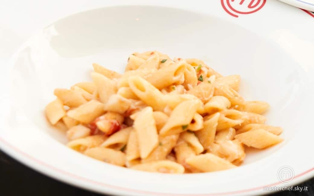 Portare a ebollizione abbondante acqua salata in una pentola e cuocere le mezze penne. Scolarla a metà cottura e mantecarla col sugo di pesce, aggiungendo all’occorrenza fondo di pesce. Impiattare.