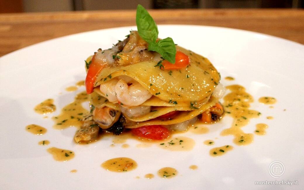 Milllefoglie di pasta al sapore di mare