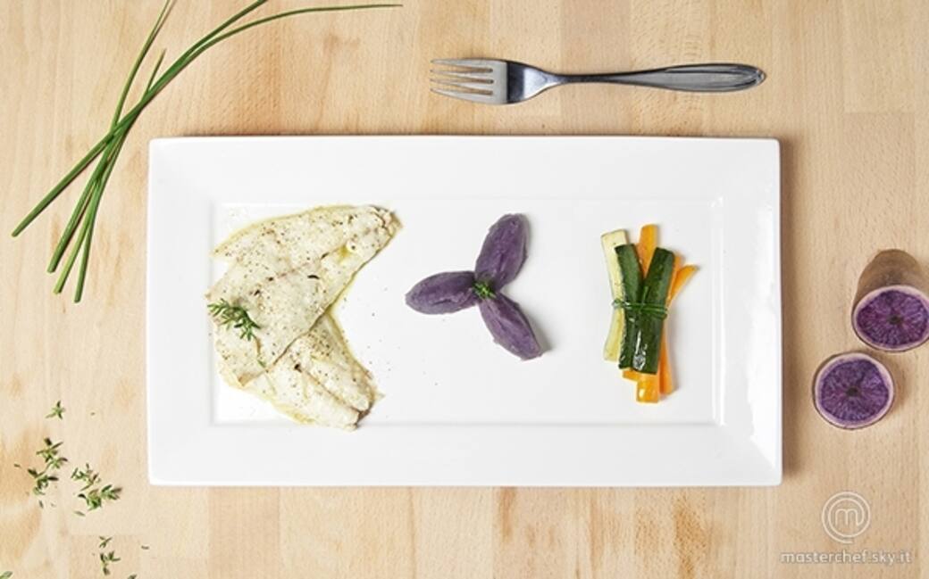 Tagliare le patate viola crude con buccia a metà. Adagiarle su una teglia coperta da carta da forno. Aggiungere olio extravergine di oliva, sale. Adagiare le carote e le zucchine tagliate a bastoncino sulla carta stagnola, bagnare con un filo d'olio e aggiungere un pizzico di sale. Chiudere a cartoccio. Disporre su due teglie piccole le carote, le zucchine su una teglia insieme e le patate e infornare a 180° gradi nel forno preriscaldato.