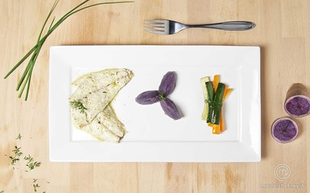 Prendere la teglia da forno e posizionare sopra un pezzo grande di carta stagnola. Adagiare della carta da forno sopra la stagnola. Bagnare con l'olio la carta da forno. Adagiare uno fianco all'altro i due filetti nel cartoccio. Aggiustare di sale. Aggiungere due rametti di timo, un filo d'olio e una spruzzata di vino bianco. Chiudere il cartoccio sigillando bene e infornarlo a 180°, posizionando il cartoccio al centro. Sfornare le zucchine e le carote dopo aver controllato la cottura aprendo delicatamente il cartoccio. Adagiarle sopra un piatto di servizio e toglierle dai loro cartocci. Creare dei mazzetti di carote e zucchine annodati con l'erba cipollina.