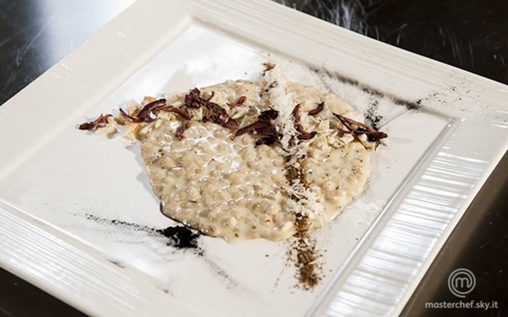 Unire in un pentolino l’orzo bollito nel brodo di legno, la crema di patate e portare a bollore aggiungendo se necessario una piccola quantità di brodo di legna. Mantecare con il burro al mugo, l’asiago fresco e il grana grattugiato. Il composto deve risultare molto cremoso, aggiustare di sale