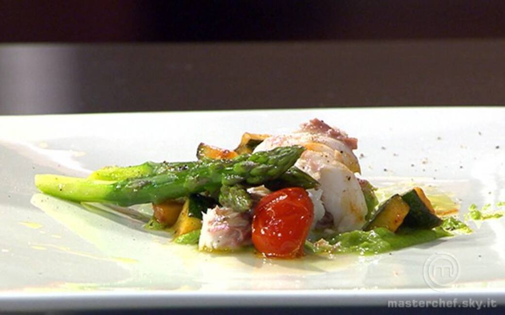 Togliere dal forno il pesce e impiattare: adagiare la crema di broccoletti, sopra i filetti di pagello e le verdure sauté. Infine mettere gli asparagi come guarnizione. Finire con una grattata di pepe e un goccio d’olio.