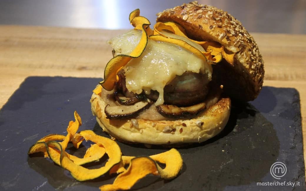 Farcire il panino con la crema di castagne, la lonza, il formaggio, i funghi e altra crema.