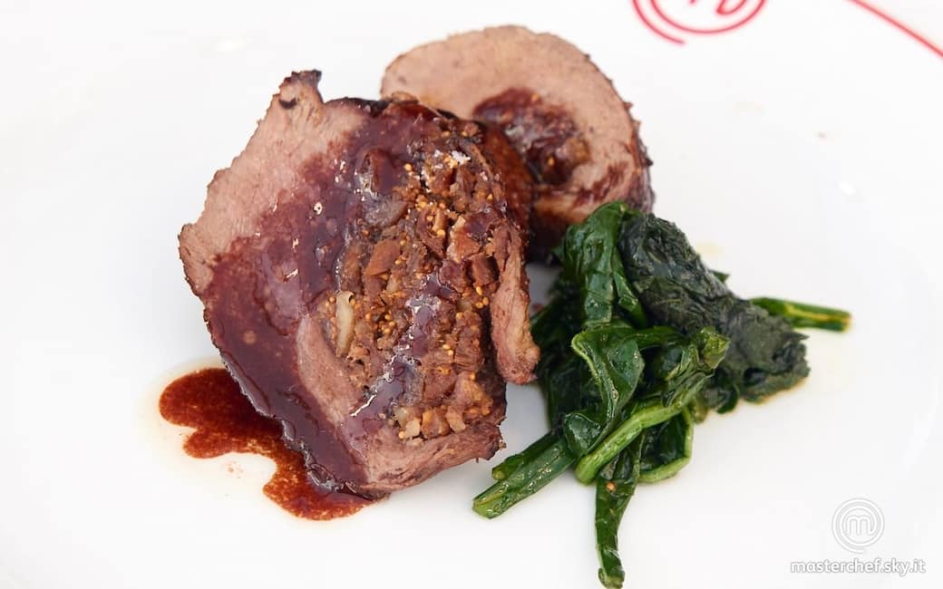 Preparare la farcia con i di fichi e le noci tritate grossolanamente con l'aggiunta dei filetti ricavati dal petto d'oca, un albume, un cucchiaio di grasso d'oca, sale grigio e pepe. Riempire i petti e con ago e spago da cucina cucirli tutti. Formare poi dei tagli sul lato della pelle e rosolarli in padella. Una volta ben sigillati su entrambi i lati trasferire in forno ed aggiungere timo e rosmarino e cuocere per 15 minuti circa a 190°C in forno ventilato poi estrarlo, laccare il lato della pelle con del miele e rosolare per altri 5 minuti con il grill.