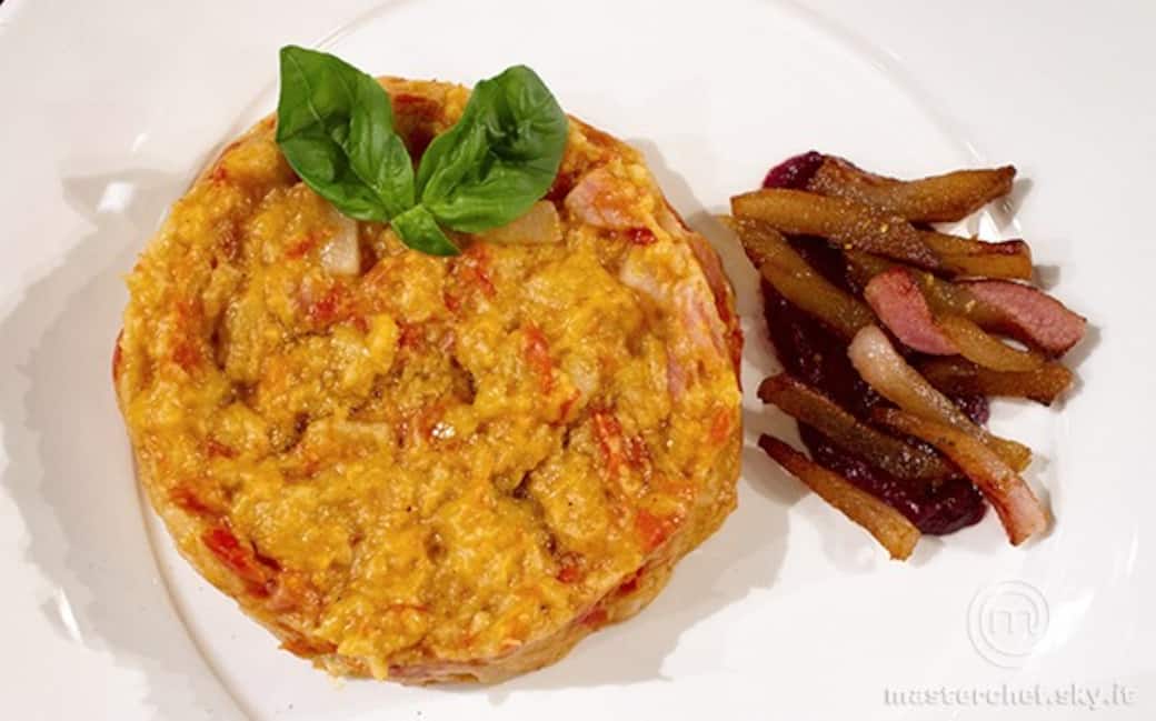 Quando il composto di pane e pomodoro sarà abbastanza denso, impiattare.