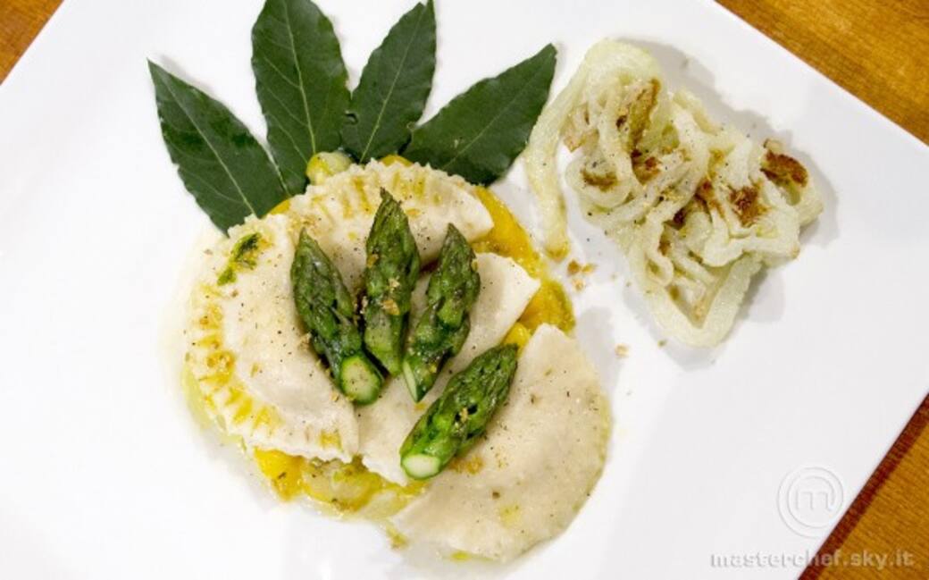 In un’altra pentola portare a ebollizione l’acqua e buttare i ravioli; dopo qualche minuto scolarli e unirli ai pomodorini e asparagi; mantecare e grattare ancora un po’ di liquirizia.