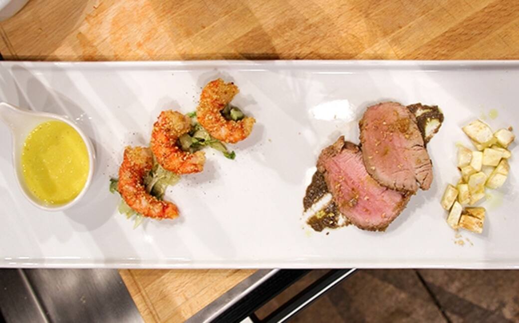 Impanare i gamberoni nella granella di nocciole e passarli in padella per un massimo di 5 minuti, girandoli una sola volta, in modo che rimangano leggermente crudi dentro.