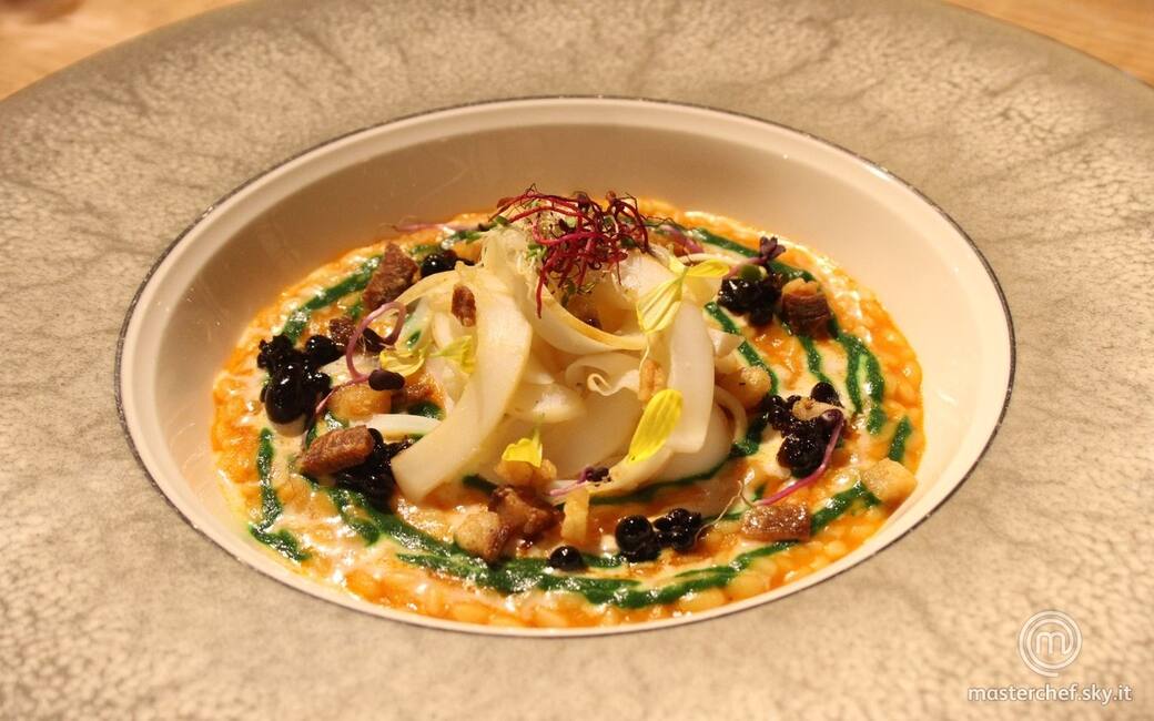 Riso di semola all’amatriciana, seppia alla diavola e aceto balsamico