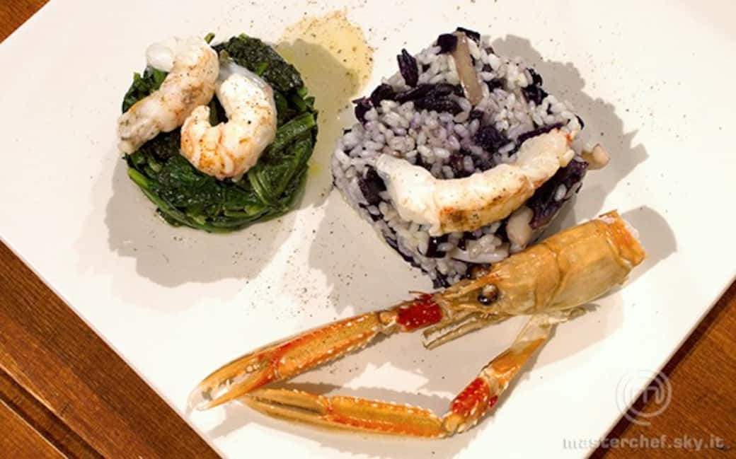 In un’altra pentola portare a ebollizione dell’acqua, salare e aggiungere il riso. Cuocere fino a cottura, scolare e unirlo al condimento della seppia e il cavolo rosso. Mantecare e mettere tutto il composto nell’abbattitore.