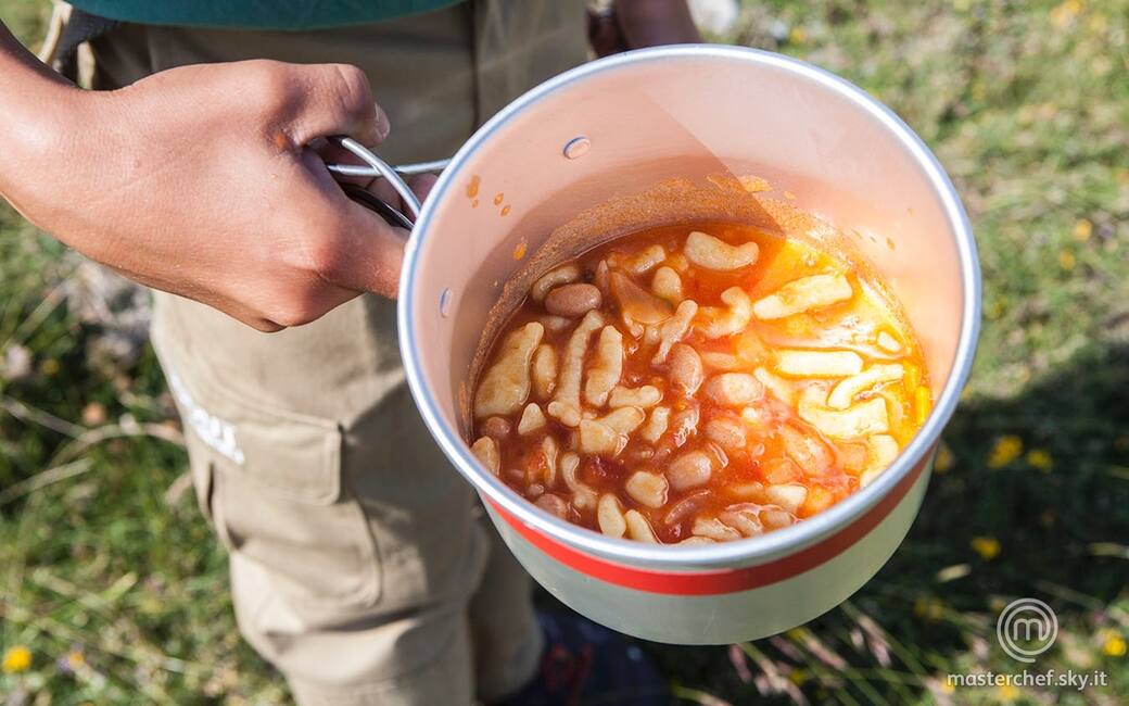 Realizzare un soffritto con sedano, carota e cipolla e lasciarlo imbiondire in una casseruola capiente con un filo di olio evo. Versare i fagioli precedentemente ammollati e saltarli per farli insaporire. Aggiungere due foglie di alloro e la passata di pomodoro, lasciar restringere qualche minuto e coprire con abbondante acqua. Continuare la cottura dei fagioli fino a quando saranno morbidi e amalgamati nel sugo ma non scotti.