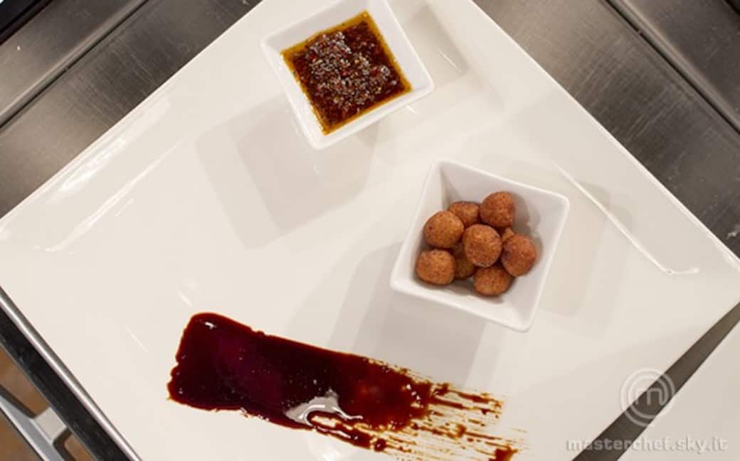 Ricavare, con l’impasto di carne e pancetta, delle palline di massimo 1,5 cm di diametro e friggerle in olio bollente per un minuto circa.