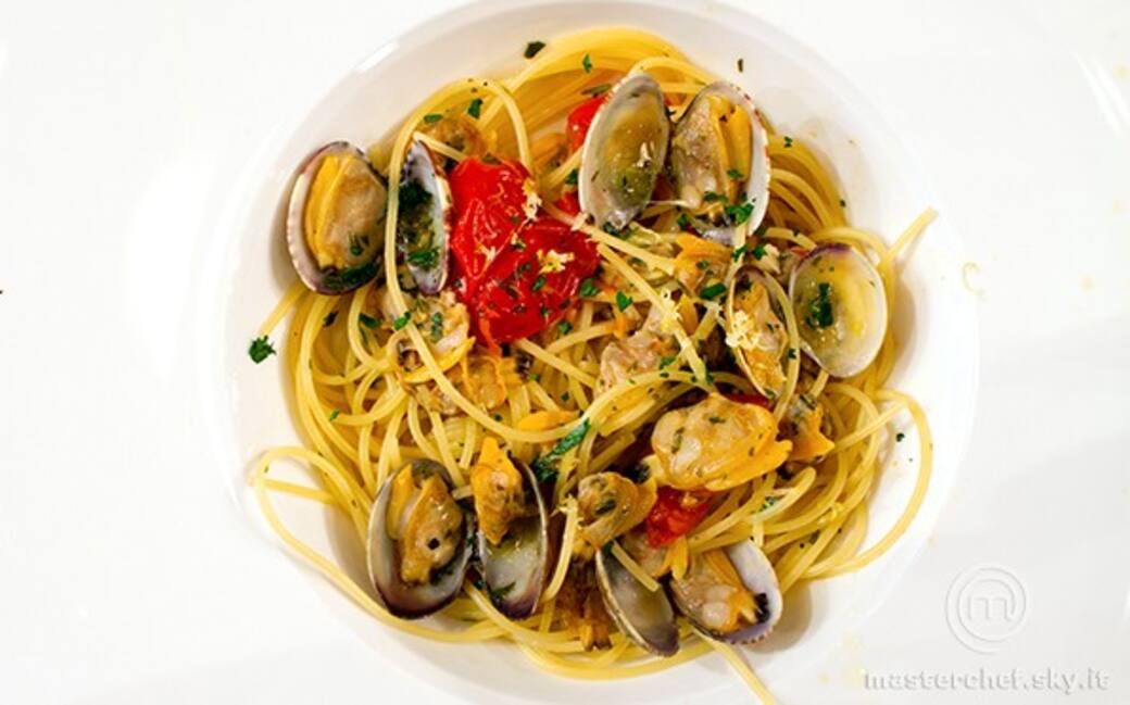 Cuocere gli spaghetti in acqua bollente salata e saltarli insieme al sugo di vongole. Impiattare e spolverare con del prezzemolo tritato.