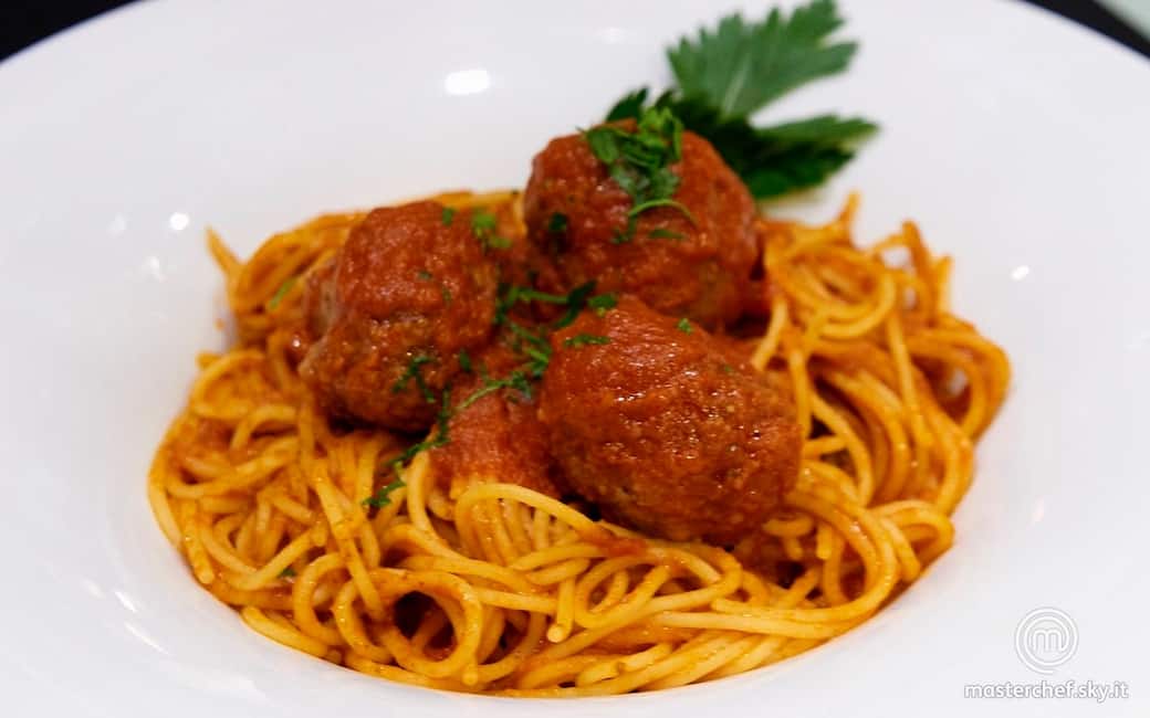 Impiattare disponendo gli spaghetti al centro adagiandovi sopra e polpette e qualche fogliolina di prezzemolo.