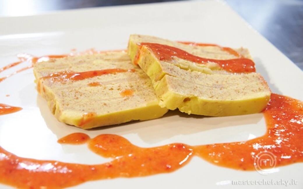 Preparare la salsa: bollire 50 gr. d’acqua con 50 gr. di zucchero, realizzare uno sciroppo, farlo raffreddare e frullarlo con le fragole tagliate. Impiattare: tagliare delle fette, adagiarle nel piatto, decorare con la salsa di fragole. Servire.