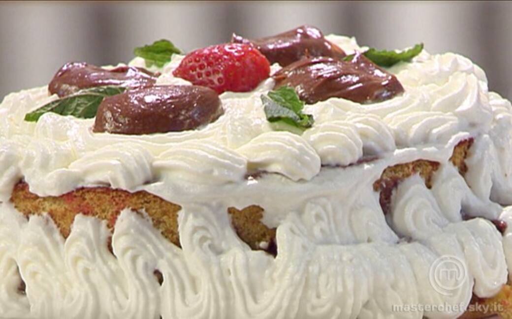 Portare a primo bollore il burro con la panna. Togliere dal fuoco, aggiungervi il cioccolato triturato e mescolare fino a completo scioglimento del cioccolato. Una volta raffreddato, montare il composto. Decorare la torta: mettervi la panna e la ganache precedentemente preparata.