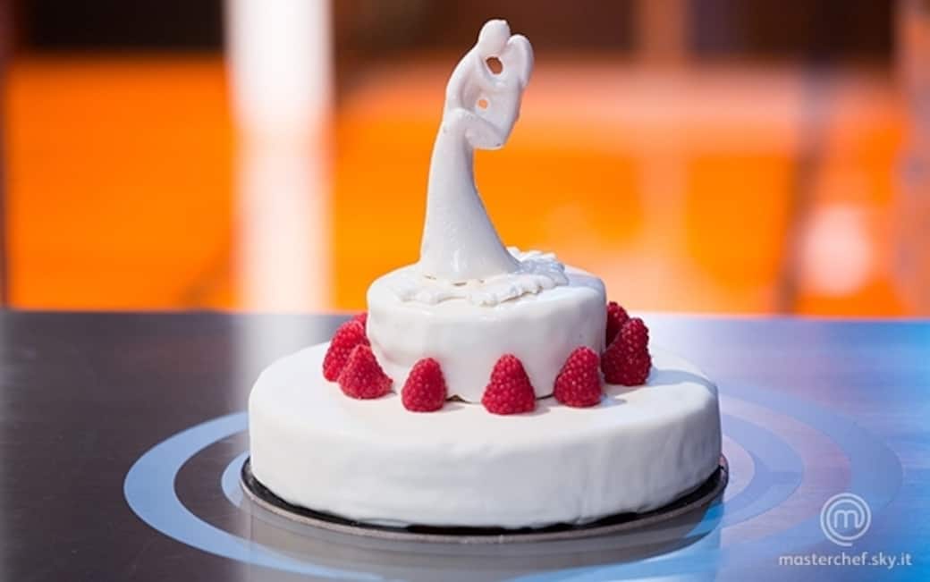 Tagliare i due pan di spagna, farcirli con abbondante crema pasticcera e lamponi. Spalmare uniformemente la crema di burro su tutta la superfice della torta, ricoprire con lo zucchero plastico precedentemente steso con un mattarello allo spessore di 3/4 mm e ripetere la stessa operazione per lo stampo più piccolo.